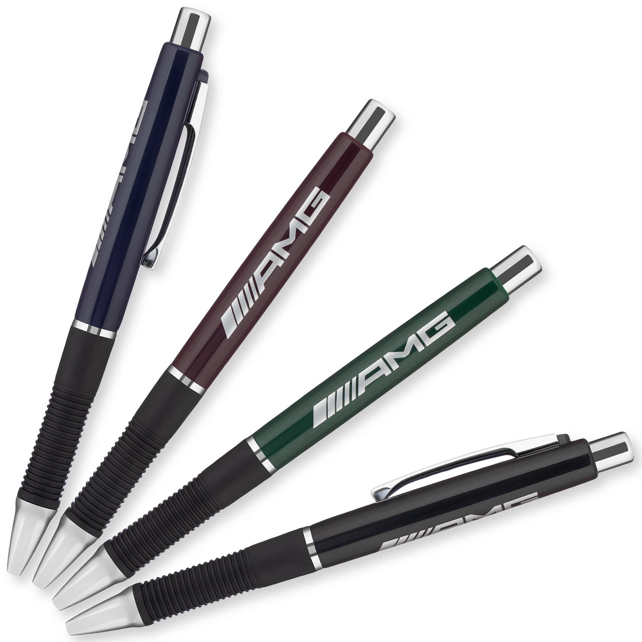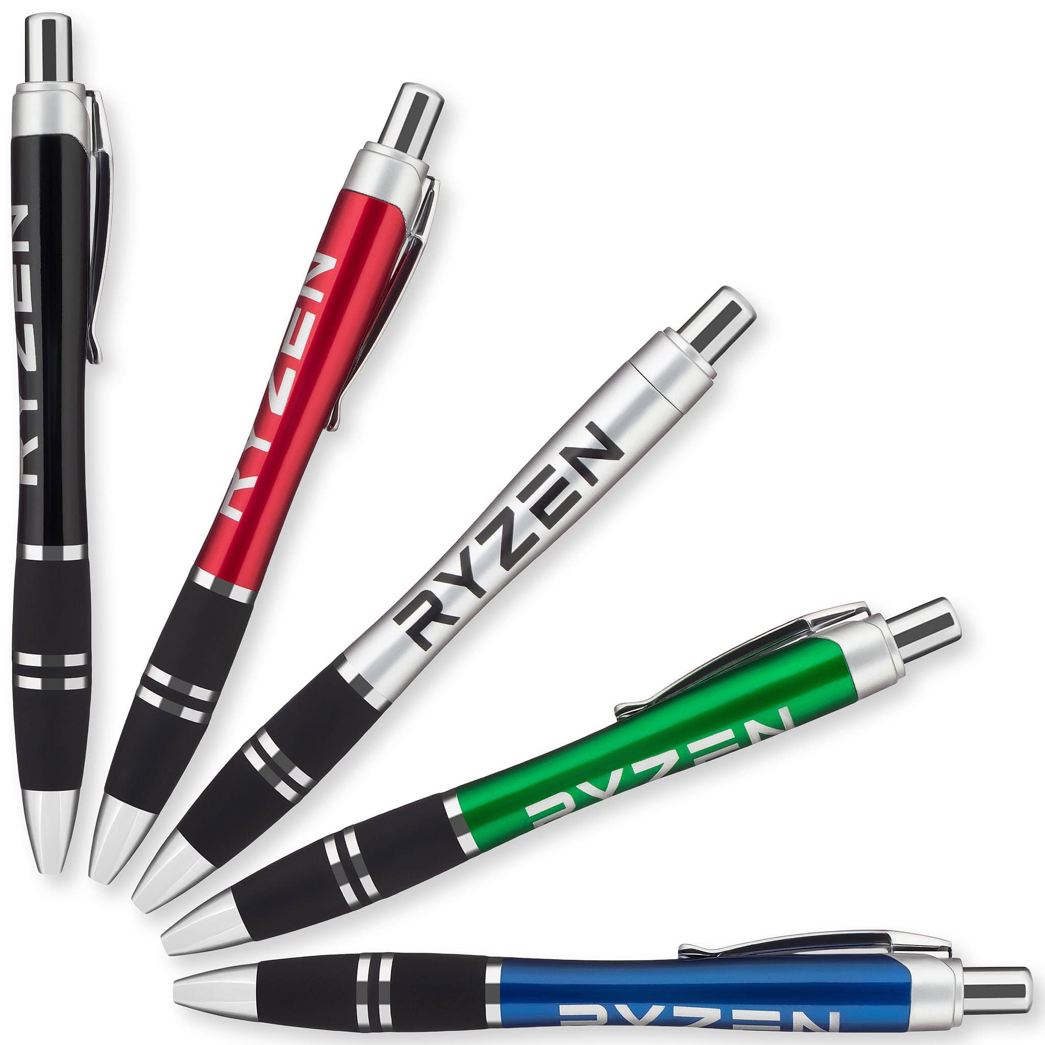 Choose a large grip pen such as the Xpress Cuda or Xpress Mardi Gras that is easy for kids to hold as a fun prize in a gift bag. Neon and translucent grip pens are eye catching at conferences, while metallic pens in darker colors convey a message of professionalism for your organization. For a sleek, fun look, choose a pen that matches the rubber grip to the color of the pen barrel in order to make a statement. For a more classic look, opt for a pen with a black rubber grip. Our Xpress Monte takes it even further with a space-aged banded grip.
