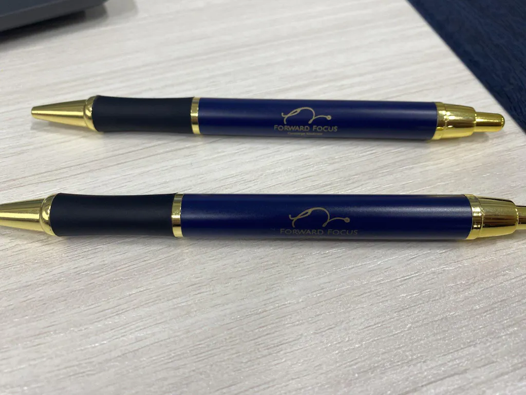 For marketing and promotional items, a customized pen is a top choice. The Bally Deluxe features sleek dark metal colors in glossy or Matte Finish options, elegantly paired with Gold Trim. Each pen includes a comfortable black rubber grip and reliable black ink-cartridge (blue ink-cartridges available for blue color pens).