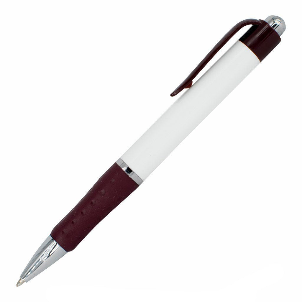 Adorned with a sleek white plastic barrel, silver accents, and a rubber grip, the White Xpress Odyssey custom pen is the embodiment of sophistication and style, certain to evoke a sense of admiration in whomever receives it. Not to mention, its pocket clip adds a personalized flair along with your chosen color accents. Benefit from the reliable medium ballpoint ink cartridge, large white barrel, variety of trim color options, comfortable rubber grip, customization capabilities, and affordable price. For further customization, the large barrel design allows for up to 4 lines of free text printing, including your company logo. Plus, you can select an assortment of trim colors or just one, and the free printing allows you to choose the font style that best represents your company, school, or organization.
